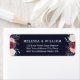 Modern Burgundy Blommigt Midnight Navy Blue Bride and Groom Bröllop Return Address Label. Blommigten är arrangemang i skuggor av rosa, burgundi, blått grått och koppar-guld på mörken midnattsflottblått. Anpassa med ditt namn och adress. Utmärkt för förlovning och bröllop. Besök vår butik, Austen & Grace, om du vill visa bröllop-svit med mera och kontakta oss om du behöver matchande produkter eller hjälp contact@austenandgrace.com