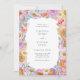 Blommigt Bröllopsinbjudan. Gör ett dynamiskt första intryck med den här djärva och skarpa bröllopsinbjudan, perfekt för ett vår, sommar- eller nyfikna fallevenemang fyllda med personlighet. En reflektor-stil ram belyser dina detaljer mot bakgrund av färgstarka, handmålade blommigtar, inklusive rosa, smart fuchsia, orange och guldfärgade gulter, lavender lila ro, blå delfiner, roliga daisy, vilda blommor och en känslig fjäril som flödar med charm. Den samordnande mönster på baksidan knyter allt till en lekfull elegans. Ange tonen för ett firande som är lika glatt och unikt som kärlek - anpassa den här strålningsdesignen idag.