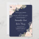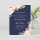 Gratulera till kärlek med den här marinblå bröllopsinbjudan med elegantens blommigt för rosa i mjuka vattenfärger. Designad med ett snyggt kalligrafiskt skript och tidlös typografi framkallar den här designen en romantisk trädgårdsinställning för ro. Perfekt för par som vill ha ett klassiskt och klassiskt stil, detta inbjudan är ett uttryck för sofistikerad elegans för ett bröllop som både är raffinerat och oförglömligt.