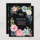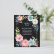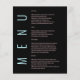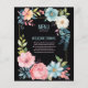 Blommigt vintage vattenfärgsmeny bröllop med blommor inslagna i ram, med färg av rosa, blått, grönt och svart bakgrund. Mycket söt och söt.