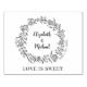 Blommigt Bröllop har en blomkrans med namn, datum och budskap.