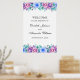 Blommigt bröllop välkomstskylt. Blå och lila Poster