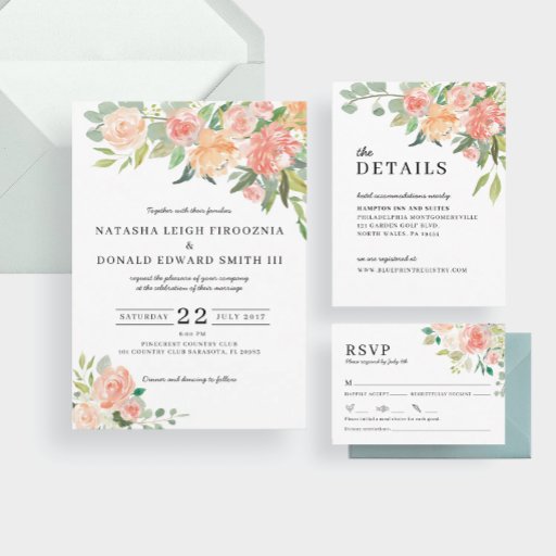 Blommigt Bröllopsinbjudan för vattenfärg Inbjudningar