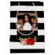 En modern, snyggt och unik design som består av en röd elegant och en rosa ros buquet som lägger till ditt favoritfoto mot en elegant med svart, vit och brons färgad rand. Ett slående utseende som tillför sofistikering till alla hemskretsar.