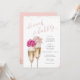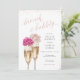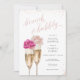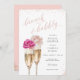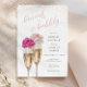 Eleganten inbjudningskort för möhippan med rosegold glitter-detaljer och ett skript i anpassningsbarna "brunch and bubly" har två glatt champagnefluk och rosa vattenfärgblommor ovanpå dem.