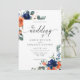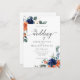 Bröllbjudan till blommigt av marin och bränd orange. Elegant-handmålad inbjudan till blommigt med vattenfärg. Ursprungliga vattenfärgsgrafik. Blommor och grönt i marin och rostig orange. Klicka på Anpassa ytterligare om du vill ändra teckensnitt, storleka och färg.