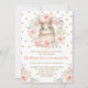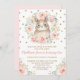 Blommigt Bunny Rabbit 1:a födelsedag Rosa Guld Inbjudningar