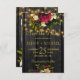 Fotot från Rustic elegant bröllop-snyggten sparar datumkortet på mörk av bruna lingor med baksida av tvillinglå ljus och rödburgundi och elfenbenskrämblommor med grönt löv och löv. +++++++++++ Enkel att anpassa med dina uppgifter! ++++++++++ Du kan anpassa det genom att ändra typsnitt och färg för text ytterligare. +++++++++++++++++ Inbjudan är lämplig för höstfall eller vinterskorpa land | Jordbrukshuset eller jultemat blommigt bröllop.