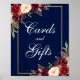 Vattenfärgsfärgad Blommigt Burgundy Marsala Blue Guld Bröllopskort & Gifts Poster