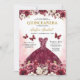 Blommigt Burgundy QR Code Princess Quinceanera Inbjudningar