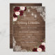 Blommigt Burgundy inbjudan till Snöre Wood String Ljus bröllopsinbjudan. Blommigt Rustic Burgundy-inbjudan. Barn-Landsbyggsbröllopets inbjudningspaket