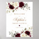 Blommigt Burgundy White Greenery Guld Möhippa Välkommen Poster Sign. Elegant Blommigt White Red Burgundy Greenery Möhippa Välkomsttecken