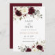 Blommigt Burgundy White Greenery Guld Spara datum Inbjudningar