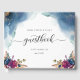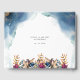Unik kelestial guestbook med vackra detaljer om blommigten och vackra färgfläckar och snygga stjärnor som skapar en kosmisk celestial bakgrund både framifrån och bakifrån. Modern skriftlig information om kalligrafi. Utformning i en vacker blandning av blått, marin, teal, turkos, lila, fuchsia och guld. Det finns ett tillgängligt kodbokstecken. En del av vår "Mystic Garden Celestial"-samling med en mängd olika samordningsprodukter tillgängliga.
