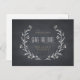 Blommigt chalkboard rustic bröllop spara datum meddelande vykort