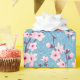 Cute rosa cherry blommar grenar på blå glitter-bakgrund. För kvinnor och flickor som kärlek blommor och blommigt som en förebild. En vacker modern representation av vår. I den japanska kulturen är det lika viktigt med en presentförpackning som själva presentens val.