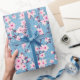 Blommigt Cherry Blommar Blue Glitter Wrapping Papp Presentpapper