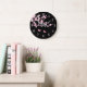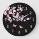 Blommigt Cherry Blommar Rosa Black Stor Klocka