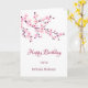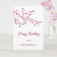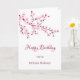 Söt rosa körsbärstext och en Grattis på födelsedagen-blommar i ett elegant-teckensnitt. Anpassa den med namn!