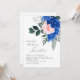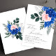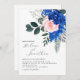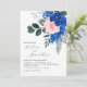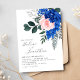 Blommigt Cobalt Blue Rosa Garden Elegant bröllop Inbjudningar