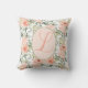 Blommigt Coral Script Monogram Dekorativ kudde - feminin, coquette home decor. Vattenskärtligt botaniskt blommönster med peachykoral färg och sage grönt. Skriptad monograminledning anger en elegant-ton i vilket rum som helst.