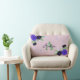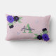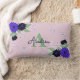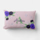 Personligens dekorativa lumbalkudde med hand plockade blommigt bouquet med blå dahlias, söta butterflies, anpassningsbar monogram och namn på bakgrunden för pastellrosa.