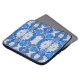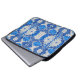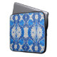 Laptop sleeve i ett fukmönster baserat på en William Morris-blommigt, digitalt utökad och färgad - nyanser av medel- till mörk-safirblått och vitt, mot en ljus silver-/grått-bakgrund