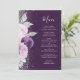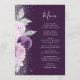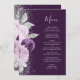 Den här elegantens moderna bröllop-meny har en lila- och lavender-blommigt som trimmas med faux silver glitter. Anpassadet kombinerar handskriftsskript och typsnitt i silver grått på djup lila. På baksidan upprepas blommigtens utformning.