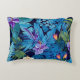 Fin tropiska blommigtar i blad, lila och grönt på denna accentkudde