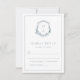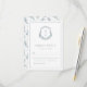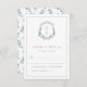 Detta romantiska och snyggt bröllop OSA-kort har vackra handmålade vattenfärgsdammiga blåa blommor på en vapensköld | Utandning med briden och brudgummens monogram. Baksidan av inbjudan innehåller ett vismiskt mönster men kan enkelt tas bort om du vill. Sök efter matchande objekt i Dusty Blue Monogrammed Vapensköld Collection.