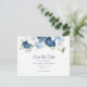 Blommigt Dusty Blue Bröllop spara datum Vykort