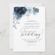 Blommigt Dusty Blue Mörk Navy Blue Boho Bröllop Inbjudningar