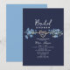 Blommigt Dusty Blue Navy Inbjudningskort för möhip