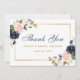 Blommigt Dusty Blue Rosa Bröllop Guld Tack Kort