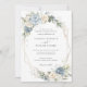 Blommigt Dusty Blue White Greenery Guld Bröllop Inbjudningar