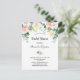 Ett trendig ljusfärglös blommigt inbjudningskort för möhippan i rosa, ro guld och vitt. En klassisk vit bakgrund på framsidan. Dekorerad med stora, lush vattenfärgade blommor, blommigtar i vitt, ro guld, rosa med lite eucaluptus greenery. Anpassa och lägg till bridens namn för att vara och närmare party. Svart text. Bakåt: färgad av sidans grönt, utformning av vykort. Tips! Om du inte vill att det ska se ut som ett vykort klickar du på anpassa, går till baksidan och tar bort delaren och lägger till frimärke.