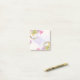 Post-it-Notes visas i vitt med en fin vattenfärgtrycksdesign för blommigten.