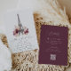 Med den här sofistikerade inbjudan "Hon Said Oui", som är designad av Redwood & Vine Design Co. Med den ikoniska Eiffel Torn som ligger i rik burgundy och blommigtar, framkallar den här inbjudan Franskens elegans med en modern twist. Den omvända sidan i en djup vin-ton ger utrymme för OSA, registerlänkar och skannerbar QR-kod - perfekt för sömlös planering för skapar. Perfekt för Fransk-inspirerade möhippor, eftermiddagstekar eller snyggt.