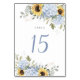Blommigt Elegant Blue Hydrangea Greenery Bröllop Bord Card. Bordsnumret Romantic Dusty Blue Hydrangea och Sunblommor Bröllop