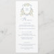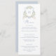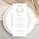 Menykort för blommigt Elegant Dusty Blue White Bröllop Vapensköld. Elegant Blommigt White Greenery Bröllop Menu