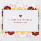 Formeln visar en klassisk etikett elegant bröllop vin flaska i klassisk typografi med blommigt ram som innehåller burgundi, rosa och gula blommor. Utformningen är färgstark elegant och skildrar glädjen i firande. Anpassa den här designen med dina uppgifter och lägg till den här eleganten till bröllop.