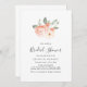 Vår inbjudningskort för möhippa, med elegant peachyskade av orange i blommigtar, tulpaner och botaniska grejer.