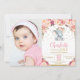 Blommigt Elephant 1:a födelsedag Guld Foto Inbjudningar