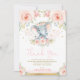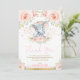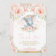 Den här vackra inbjudan till babyduschen innehåller mjuka och delikata blommor och en söt baby-elefant med en elegant blomma krona.