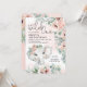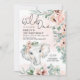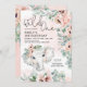 Din söt jordnöt blir EN! Fira hennes speciella milstolpe med vår vackra inbjudan på första födelsedag med en vacker illustration av en söt elefant från baby, vackra blommor från rosa och eukalyptus greenery