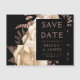 Den här eleganten har det moody magnetiska bröllop spara datum-kortet en lush, romantisk blommigt bukett i elfenben med faux-folie från ro och löv från glitter mot svart bakgrund. Anpassa ro-färgad-texten i typsnitt snyggt på en svart rektangel.