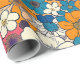Den här grafiken brinner med en tät och livlig arrangemang av pulserande blommor och skapar en rik av färg och former. Blommigtens motiv återges i fet orange, blått, rosa och vitt, sammanvävda med delikat radarbete som lägger till detaljer och struktur. De överlappande petalerna och olika storlekar på blommorna ge ger en känsla av överflöd och firande. Sammansättningen är både lekfull och komplicerad, med en dynamisk balans mellan färg och form.