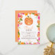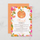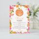 Lite pumpa är på väg! Fira din babydusch den här höstsöta baby-pumpen i orange med en nappar och blommigt vattenfärg i ram med ljusa rosa och orange blommor tack vare ditt babyduschkort.