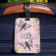 På den här visemiska bagagetaggen finns två flytande älvor mellan skisserade blommor på en rosa som skapar fantasi barnliknande vibes. Kan anpassas med en namn. En del av Blommigten Fantasy Älvors-samlingen.