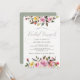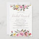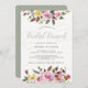 Den här vackra möhippans brunch-inbjudan har trendig vattenfärgsblommor och andra blommor och löv i nyanser om rosa, lila, gult och grått.